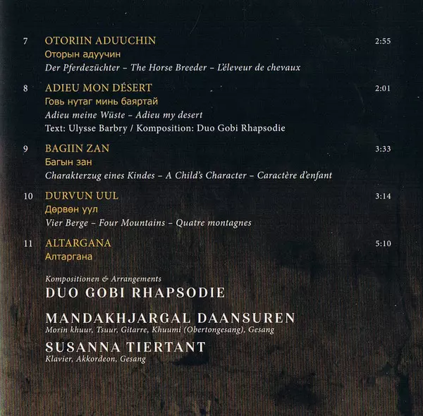 | Művész | Duo Gobi Rhapsodie |