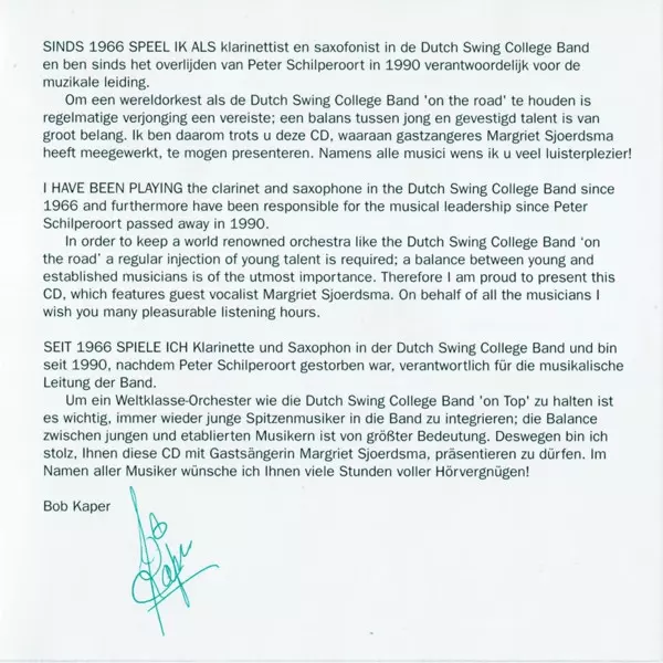| Művész | The Dutch Swing College Band | Margriet Sjoerdsma |