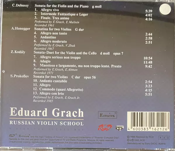 | Művész | Claude Debussy | Sergei Prokofiev | Arthur Honegger | Zoltán Kodály | Eduard Grach |