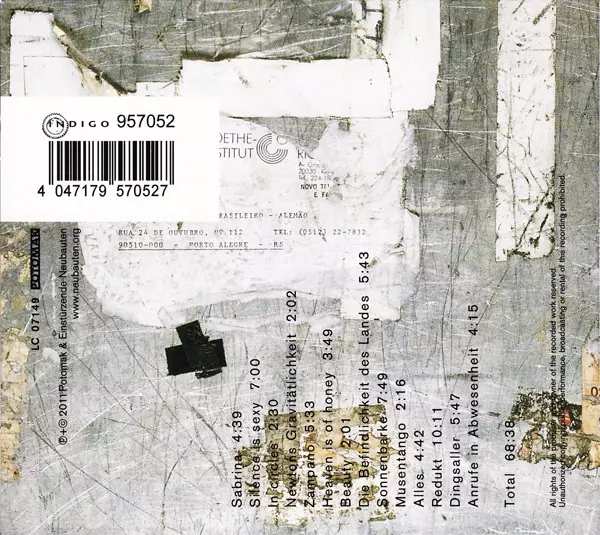 Einstürzende Neubauten: Silence Is Sexy A lemezen lévő változat CD - standard kiadás. Ez a különleges kiadás - Németország a kiadó által Indigo (2) a következőkkel együttműködve Potomak év 5. július 2011.