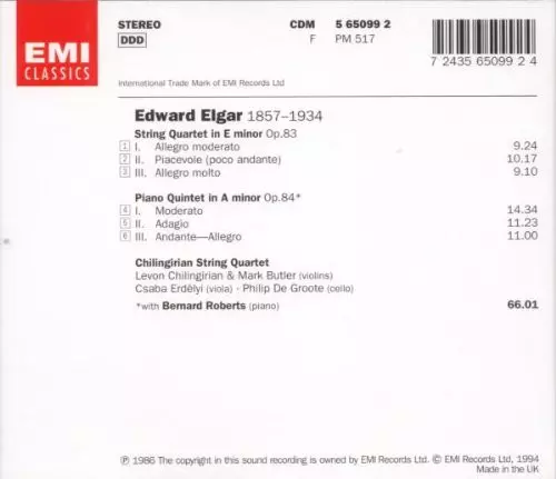 | Művész | Sir Edward Elgar | Bernard Roberts | Chilingirian String Quartet |