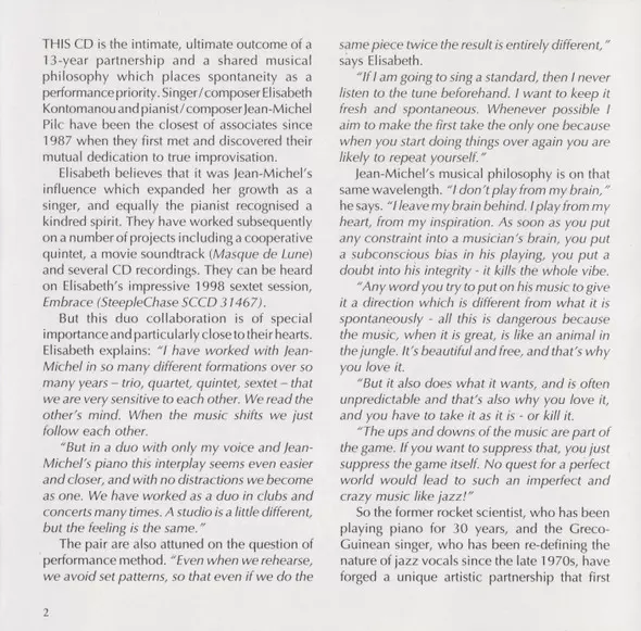 | Művész | Jean-Michel Pilc | Elisabeth Kontomanou |