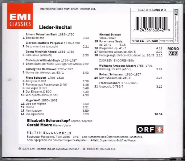 | Művész | Elisabeth Schwarzkopf | Gerald Moore |