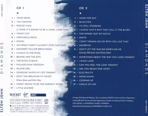 Elton John: Diamonds A lemezen lévő változat 2CD - felújított kiadás. Ez a különleges kiadás - Japán a kiadó által Rocket Entertainment a következőkkel együttműködve Virgin EMI Records és UMC év 5. november 2021.