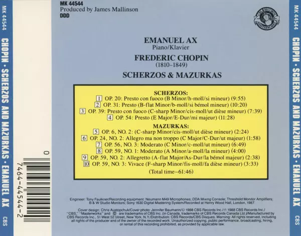 | Művész | Frédéric Chopin | Emanuel Ax |