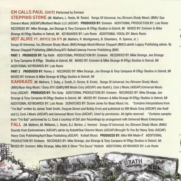 Keyboards Luis Resto | Mixed By Eminem, Mike Strange | Producer Eminem | Producer [Additional Production] Luis Resto | Recorded By Joe Strange (2), Mike Strange, Tony Campana | Vocals [Additional] Mario Resto | Written-By Luis Resto, Mario Resto, Marshall Mathers