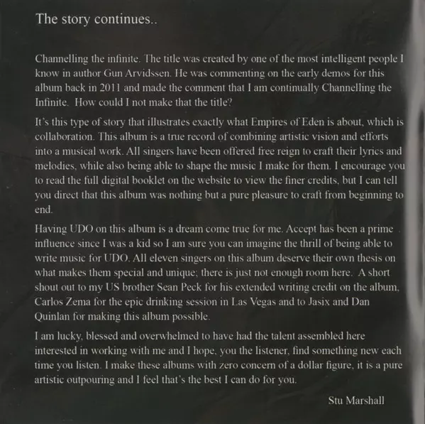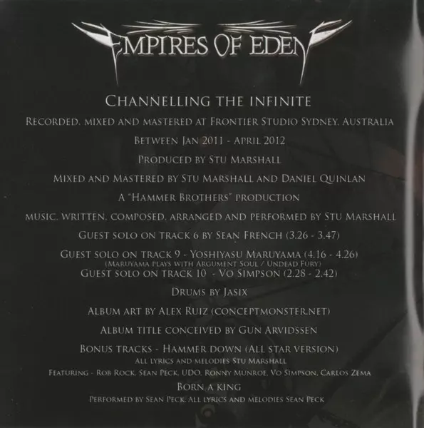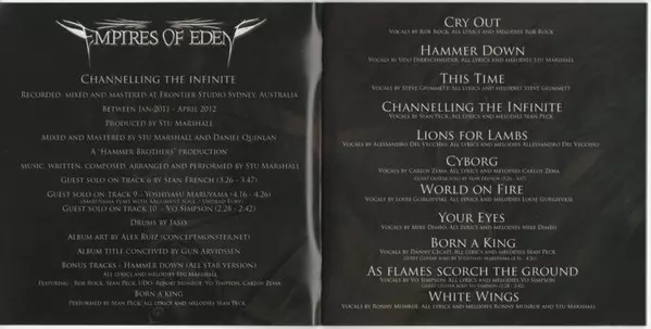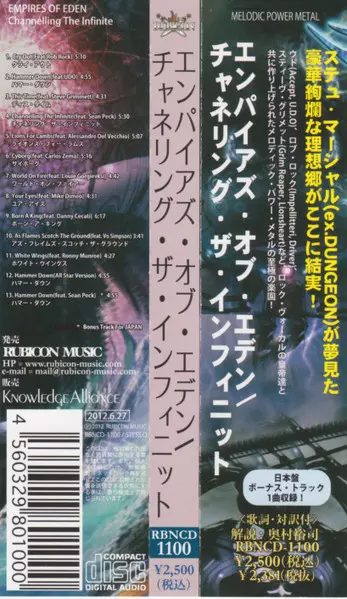 Empires Of Eden: Channelling The Infinite A lemezen lévő változat CD - standard kiadás. Ez a különleges kiadás - Japán a kiadó által Rubicon Music év 27. június 2012. Album műfajok között Rock és Progressive rock.