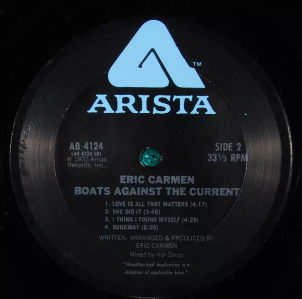 Eric Carmen: Boats Against The Current A lemezen lévő változat bakelitlemez LP - standard kiadás. Ez a különleges kiadás - USA a kiadó által Arista napján jelent meg 1977. Album műfajok között Rock, Pop Rock és Soft Rock. Terre Haute Pressing Gatefold Vinyl.