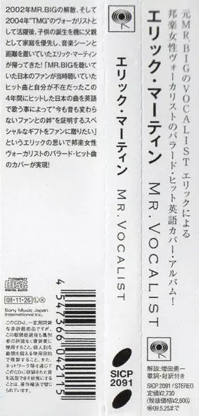 Eric Martin: Mr. Vocalist A lemezen lévő változat CD - standard kiadás. Ez a különleges kiadás - Japán a kiadó által Sony Records Int'l év 8. január 2008. Album műfajok között Rock és Pop Rock.