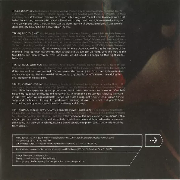 Producer, Drums Eric Roberson | Producer, Instruments [All Other] Parris Bowens | Saxophone Harold "Telly" Felder | Written-By Eric Roberson, Parris Bowens