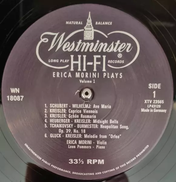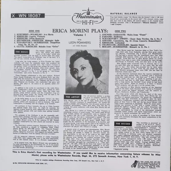 | Cím | Erica Morini Plays: Volume 1 |