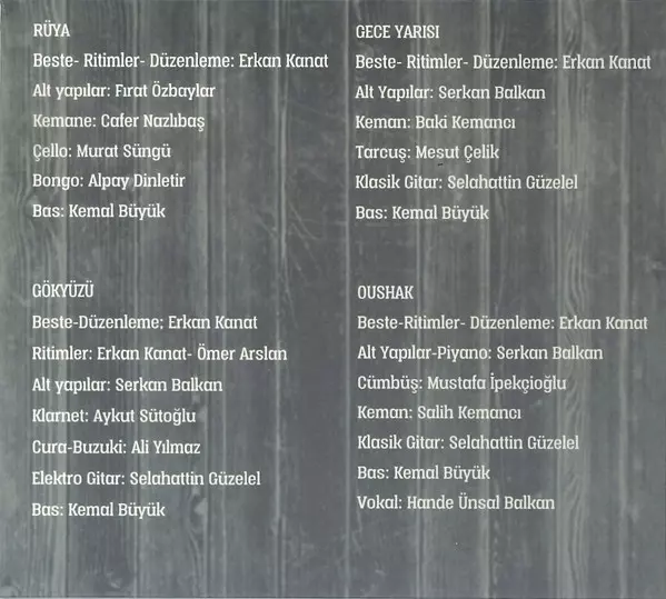 Accordion Bekir Sakarya | Bass Kemal Büyük | Bouzouki Serkan Uz | Kemenche Furkan Bilgi | Oud Mete Aslan | Written-By Şevket Aşıkuzun | Written-By [Rhythms], Arranged By Erkan Kanat