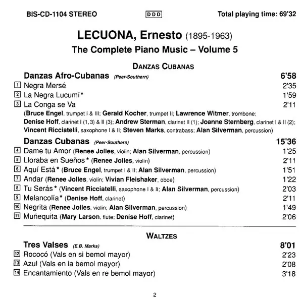| Művész | Ernesto Lecuona | Thomas Tirino |