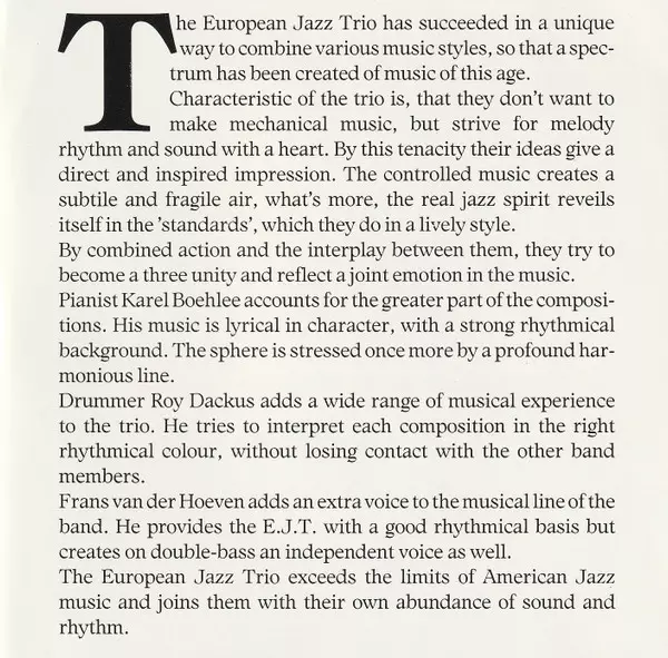 | Művész | European Jazz Trio |