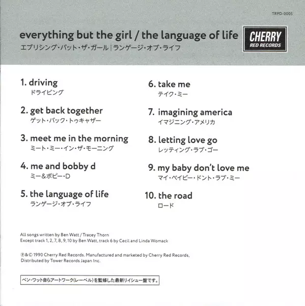 Everything but the Girl: The Language Of Life A lemezen lévő változat CD - felújított kiadás. Ez a különleges kiadás - Japán a kiadó által Cherry Red év 22. november 2017. Album műfajok között Pop, Elektronikus zene, Funk / Soul és Synth-Pop.
