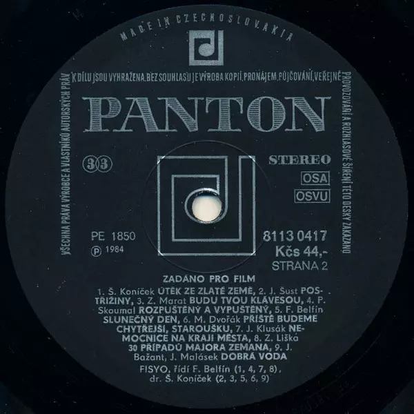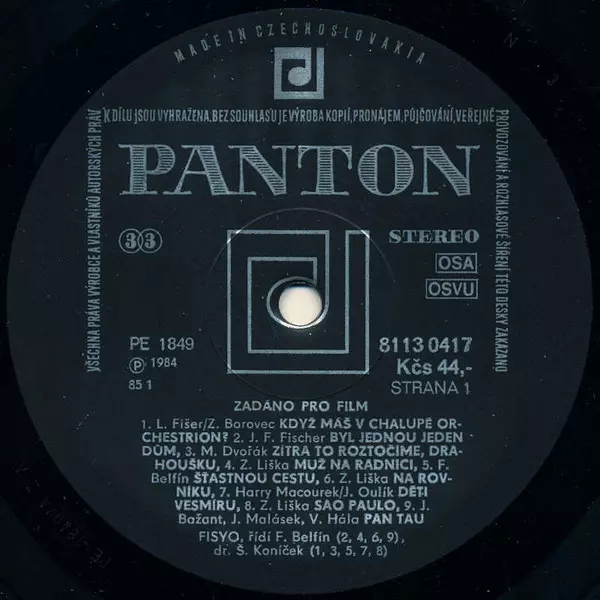 Filmový Symfonický Orchestr: Zadáno Pro Film A lemezen lévő változat bakelitlemez LP - standard kiadás. Ez a különleges kiadás - Csehszlovákia a kiadó által Panton. Album műfajok között Színpad és képernyő és Theme.