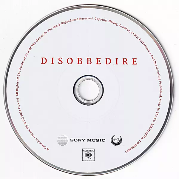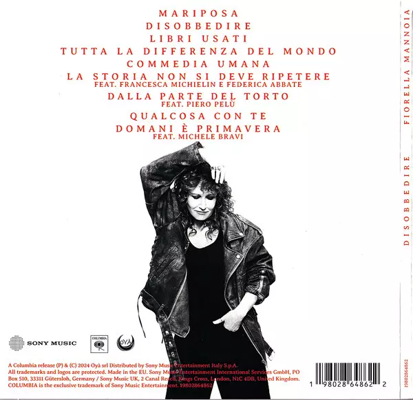 Fiorella Mannoia: Disobbedire A lemezen lévő változat CD - standard kiadás. Ez a különleges kiadás - Olaszország a kiadó által Sony Music a következőkkel együttműködve Columbia és Oyà év 6. december 2024. Album műfajok között Pop, Ének és Ballada.