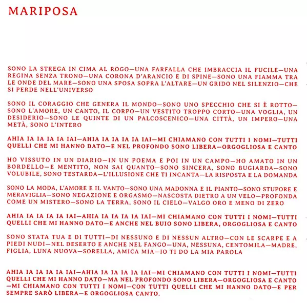 Backing Vocals Alessandro Malavenda, Andrea Garozzo, Benedetta Fumagalli, Chiara Calderale, Chiara Faroni, Elisa Burgio, Jennifer Angelica Dela Cruz Cunanan | Bass Pierpaolo Ranieri | Featuring Federica Abbate, Francesca Michielin | Guitar Fernando Pantini | Keyboards, Programmed By Giovanni Antonicelli | Percussion, Programmed By Carlo Di Francesco | Programmed By [Additional] Mattia Cerri