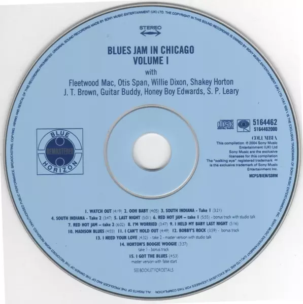 Fleetwood Mac: Blues Jam In Chicago - Volume One A lemezen lévő változat CD - felújított kiadás. Ez a különleges kiadás - Európa a kiadó által Columbia a következőkkel együttműködve Blue Horizon év 5. december 2005. Album műfajok között Rock, Blues és Blues-Rock.