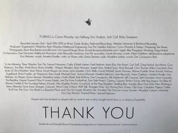 Foxing is an American indie rock band formed in St. Louis, Missouri in 2011. The band is known for their expansive and emotionally intense music that blends elements of post-rock, emo, and indie rock. Foxing's lineup has included Conor Murphy , Eric Hudson , and Jon Hellwig , among...