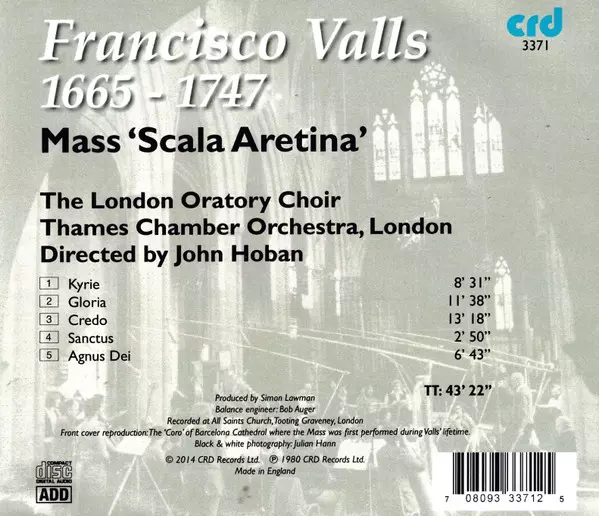 | Művész | Francisco Valls | John Hoban | The London Oratory Junior Choir | The Thames Chamber Orchestra |