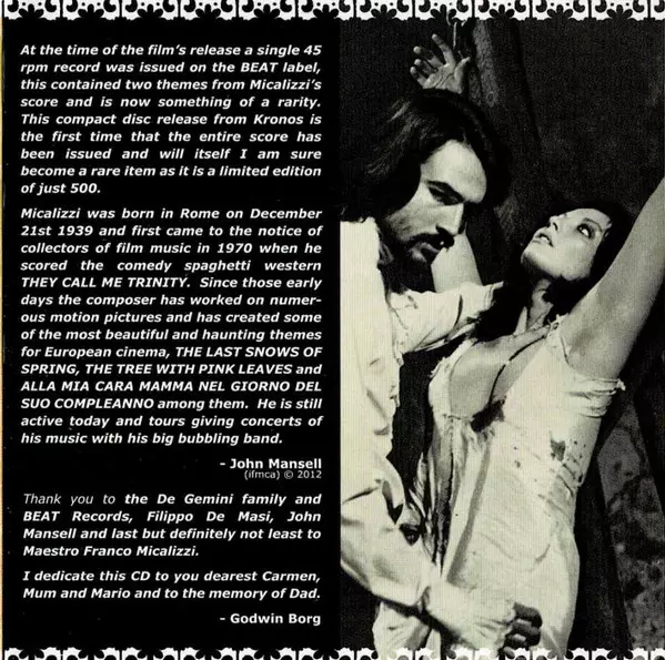 | Cím | Il Figlio Della Sepolta Viva (Original Motion Picture Soundtrack) LTD |