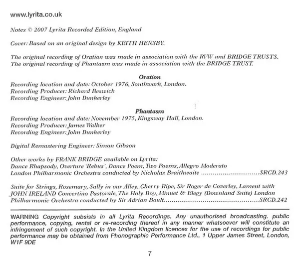 Művész | London Philharmonic Orchestra | Frank Bridge | Nicholas Braithwaite | Julian Lloyd Webber | Peter Wallfisch |