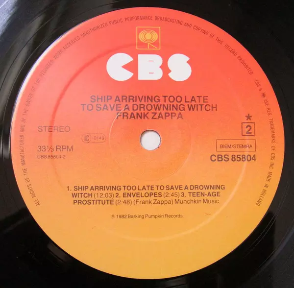 | Kiadó | CBS | Barking Pumpkin Records |