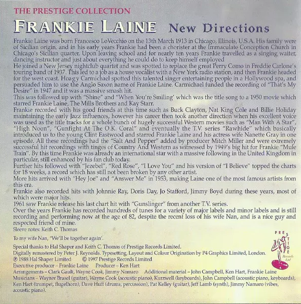 Frankie Laine, born Francesco Paolo LoVecchio on March 30, 1913, was an American singer, songwriter, and actor whose career spanned nearly 75 years. He became one of the most popular vocalists of the mid-20th century, known for his rich, powerful voice and dramatic style. Laine's g...