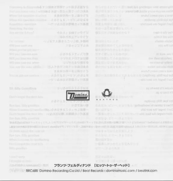 Franz Ferdinand: Hits To The Head A lemezen lévő változat CD - standard kiadás. Ez a különleges kiadás - Japán a kiadó által Domino a következőkkel együttműködve Beat Records év 4. február 2022.