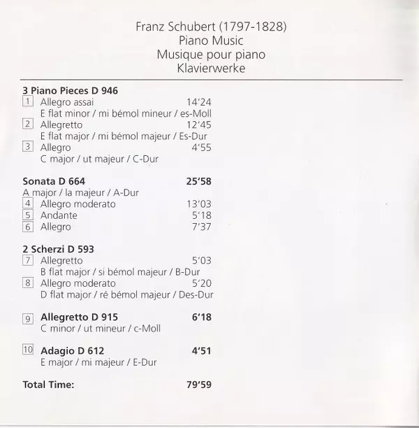 Cím | Piano Music - Sonata A Major D 664 - 3 Piano Pieces D 946 - Scherzi D 593 |