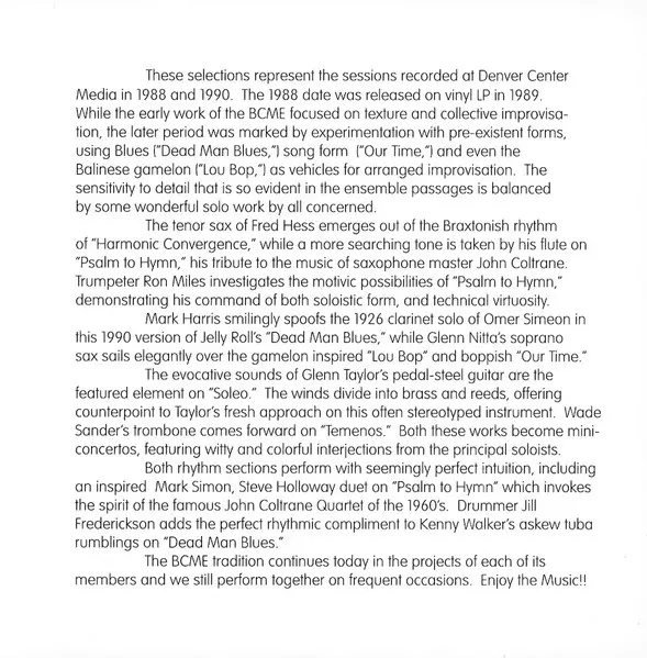 | Művész | Fred Hess | Boulder Creative Music Ensemble |