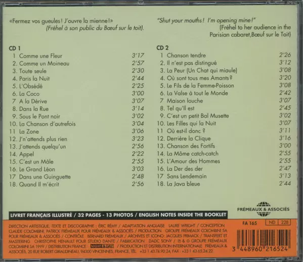 Fréhel: 1930-1939 A lemezen lévő változat 2CD - standard kiadás. Ez a különleges kiadás - Franciaország a kiadó által Frémeaux & Associés év 1. április 2015. Album műfajok között Pop és Chanson.
