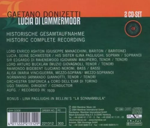 | Művész | Gaetano Donizetti | Orchestra Sinfonica Dell'Eiar | Coro Dell'EIAR | Ugo Tansini |
