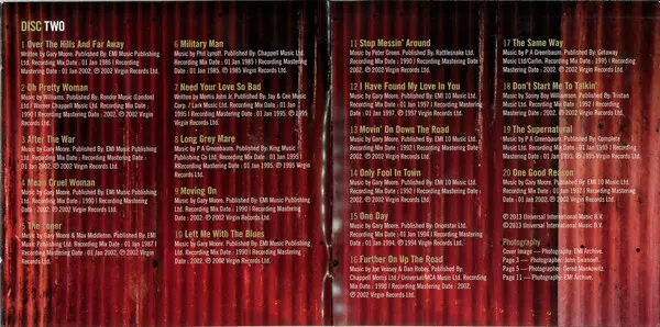 Gary Moore: Gold is a compilation album released in 2013 by British blues-rock musician Gary Moore. The album features recordings from Moore's time in Thin Lizzy, Skid Row and Colosseum II as well as from his solo career.