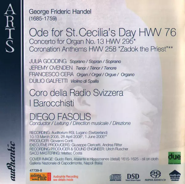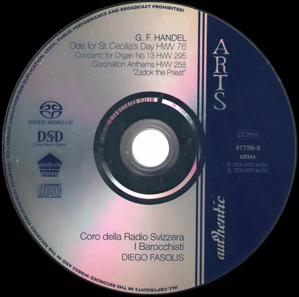 | Cím | Ode For St. Cecilia's Day HWV 76 / Concerto For Organ HWV 295 / Coronation Anthems HWV 258 "Zadok The Priest" |