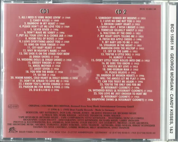 George Morgan: Candy Kisses A lemezen lévő változat 8CD/Dobozkészlet - standard kiadás. Ez a különleges kiadás - Németország a kiadó által Bear Family Records napján jelent meg 2000. Album műfajok között Pop, Folk, World, & Country és Country.