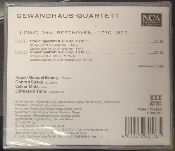 | Művész | Ludwig van Beethoven | Gewandhaus-Quartett Leipzig |