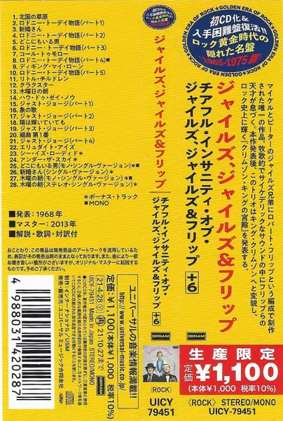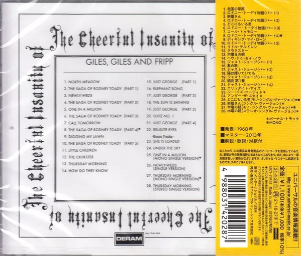 | Cím | The Cheerful Insanity Of Giles, Giles & Fripp = チアフル・インサニティ・オブ・ジャイルズ、ジャイルズ&フリップ +6 LTD |