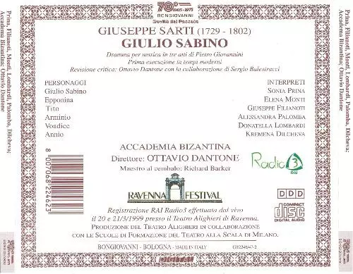 | Művész | Ottavio Dantone | Sonia Prina | Accademia Bizantina | Giuseppe Sarti | Giuseppe Filianoti | Elena Monti | Alessandra Palomba | Donatella Lombardi | Kremena Dilcheva |
