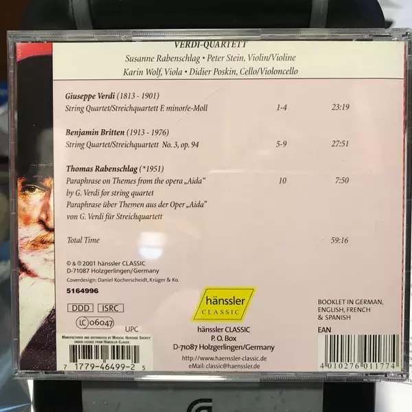 | Művész | Giuseppe Verdi | Benjamin Britten | Verdi Quartett | Thomas Rabenschlag |