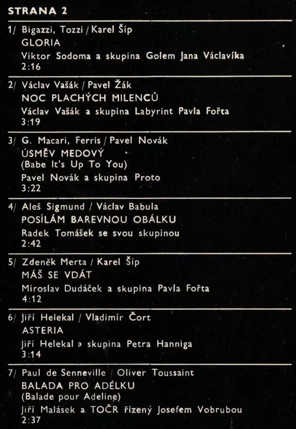 Backing Band Golem (7) | Leader Jan Václavík | Lyrics By [Czech] Karel Šíp | Vocals Viktor Sodoma | Written-By Giancarlo Bigazzi, Umberto Tozzi | |||