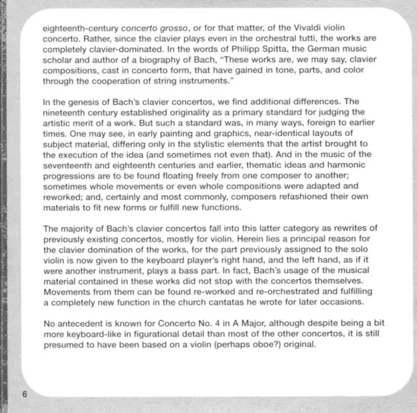 | Concerto No. 4 In A Major For Piano And Orchestra, BWV 1055 | ||
