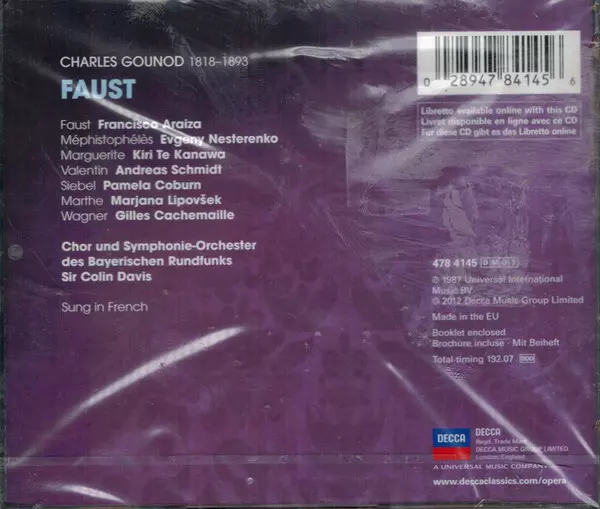 Symphonie-Orchester Des Bayerischen Rundfunks: Faust A lemezen lévő változat 3CD - standard kiadás. Ez a különleges kiadás - Európa a kiadó által Decca év 11. szeptember 2012. Album műfajok között Klasszikus zene, Románcok és Opera.