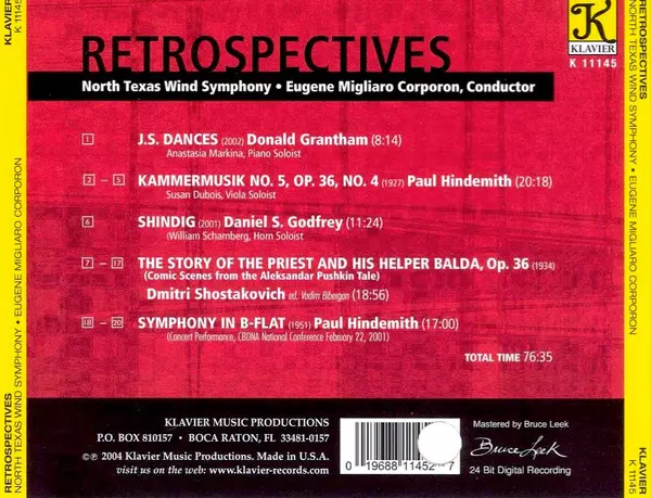 | Művész | Dmitri Shostakovich | Paul Hindemith | Eugene Corporon | North Texas Wind Symphony | Donald Grantham | Daniel Godfrey |