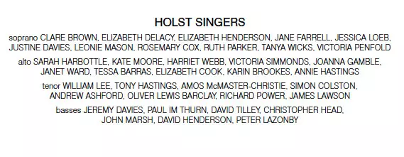 | Művész | Gustav Holst | Stephen Layton | The Holst Singers |