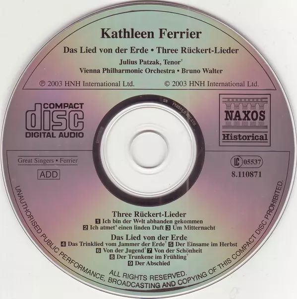 | Művész | Wiener Philharmoniker | Gustav Mahler | Bruno Walter | Kathleen Ferrier | Julius Patzak |