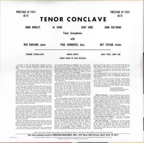| További információk | Mono 180g Vinyl Remastered — Analogue / Prestige |