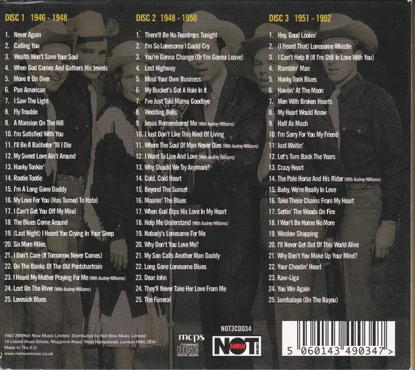 Hank Williams: The Anthology A lemezen lévő változat 3CD - felújított kiadás. Ez a különleges kiadás - UK a kiadó által Not Now Music év 21. július 2010. Album műfajba sorolható Folk, World, & Country.