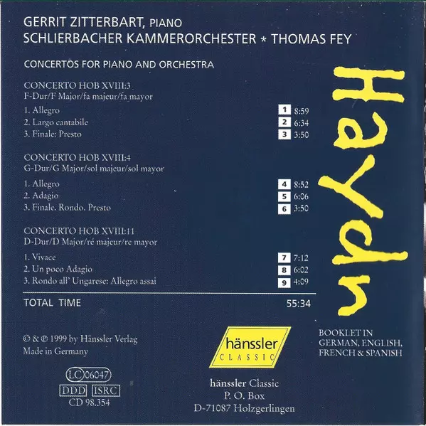 | Művész | Joseph Haydn | Thomas Fey | Gerrit Zitterbart | Schlierbacher Kammerorchester |